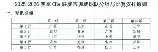 虎扑09月24日讯据相关消息人士透露,2025-2026赛季CBA初版赛程已经出炉,20支球队被分为四组,共计42轮比赛。值得一提的是,山西、广东和上海同被分为第三组,成为最大的“死亡之组”。