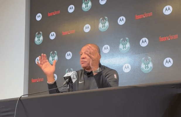赛后,雄鹿主教练道格-里弗斯接受了记者采访,谈到当家球星扬尼斯-阿德托昆博。